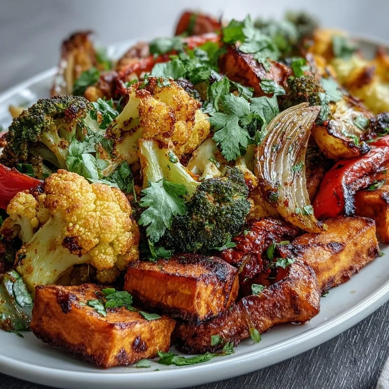- Sweet potato and carrots: Natural sweetness balances the earthiness of the spices, and their density means they caramelize rather than dry out during roasting.