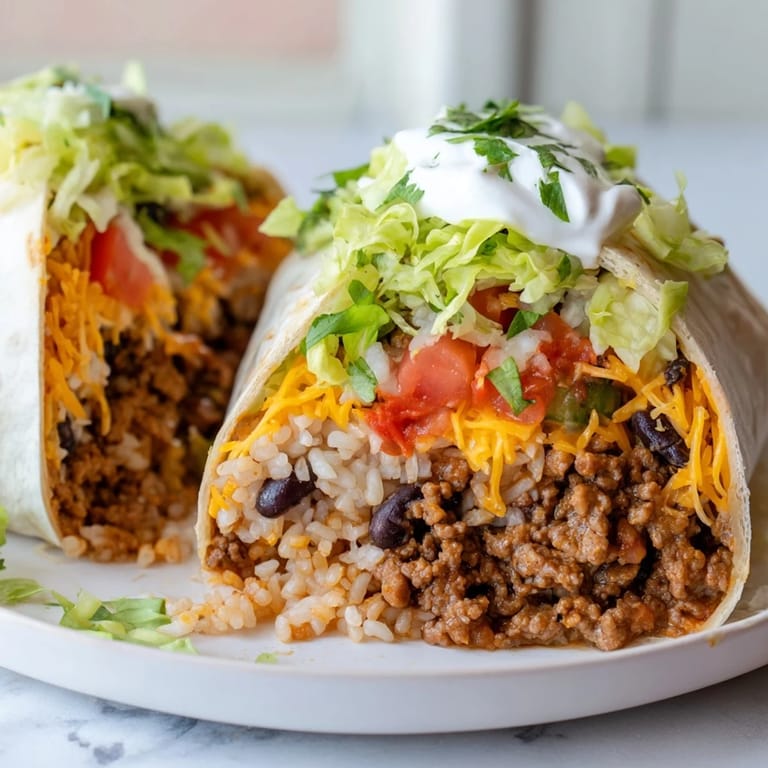 Save to Pinterest There's something almost meditative about rolling a burrito, and I discovered this the night I made them for a friend who'd had a rough week. She sat at my kitchen counter, and I started layering rice, beans, and seasoned beef into a warm tortilla while she talked about her day. By the time I finished wrapping that first one, she was already smiling at the aroma. These burritos became our thing after that—hearty, forgiving, and ready in under an hour whenever we needed comfort food that felt both effortless and intentional.
