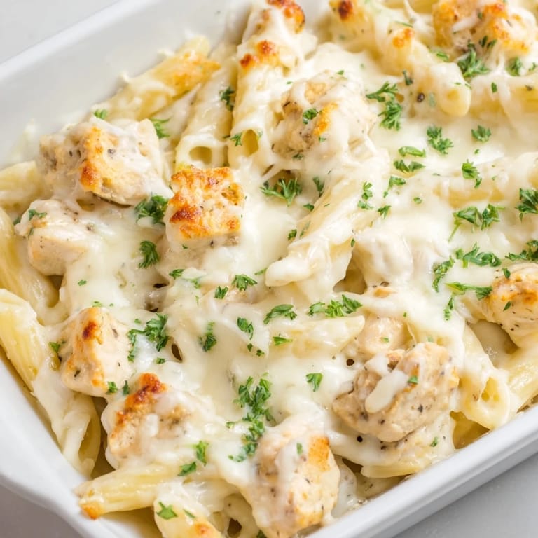 Save to Pinterest There's something about the smell of Alfredo sauce simmering on the stove that pulls everyone into the kitchen without an invitation. I learned to make this bake on a rainy Tuesday when my mom called asking if I could handle feeding a crowd on short notice, and I realized I had most of the ingredients already waiting. That first version was imperfect, a little watery in places, but it disappeared so fast that I knew I was onto something worth perfecting.