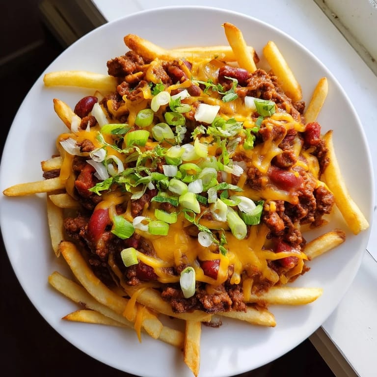 Save to Pinterest There's something about the smell of hot oil and melting cheese that instantly takes me back to a Friday night when my roommate burst through the kitchen door demanding comfort food. I had some chili simmering on the stove and frozen fries in the freezer, and instead of serving them separately like a normal person, I decided to layer them together and broil the whole thing. The kitchen filled with this savory, cheesy cloud, and by the time everyone gathered around, it became clear I'd stumbled onto something special. Chili cheese fries aren't fancy, but they're honest in a way that feels earned.