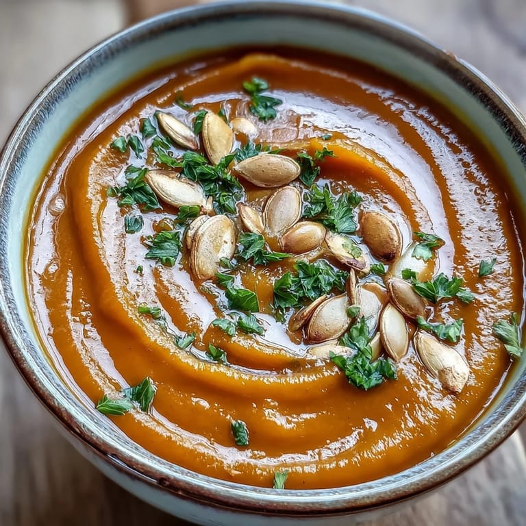 Save to Pinterest I remember my kitchen window fogging up as the first real frost hit last October. The air outside was biting, but the smell of toasted cumin and sweet squash made the whole house feel like a safe haven. I did not have a plan, just a heavy pumpkin and a loose idea of warmth. It turned out to be the most velvety bowl of comfort I had ever managed to pull together on a Tuesday night. This soup has since become my standard cure for a gray afternoon.