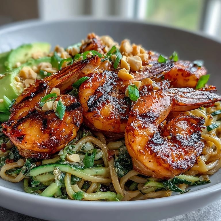 Save to Pinterest My neighbor Marcus showed up one summer evening with a bag of enormous shrimp from the farmers market and zero dinner plans, so we fired up the grill on a whim. While the coals heated, he started chopping vegetables with this infectious energy, and I remembered a noodle bowl I'd made months before. Twenty minutes later, we were eating straight from our own bowls, the smoke still clinging to our clothes, and he asked for the recipe before we'd even finished. That's when I knew this wasn't just a weeknight dinner—it was something people would come back to.