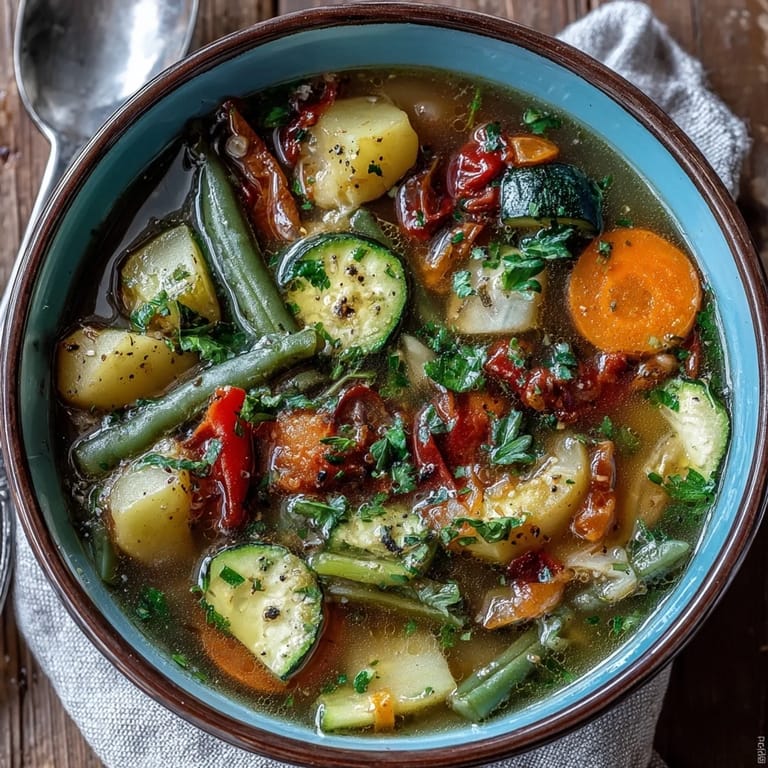 Save to Pinterest I used to live in a drafty apartment where the windows rattled every time the wind picked up. On those rainy Tuesday nights, the only thing that could actually warm my bones was the smell of onions hitting hot olive oil. This vegetable soup became my ritual for shaking off the damp chill of the city. It is a vibrant bowl that feels like a big hug from the inside out. I never follow the measurements exactly, yet it always tastes like home.