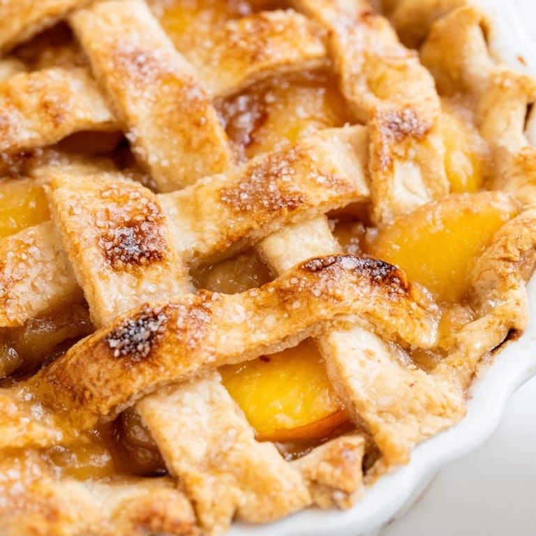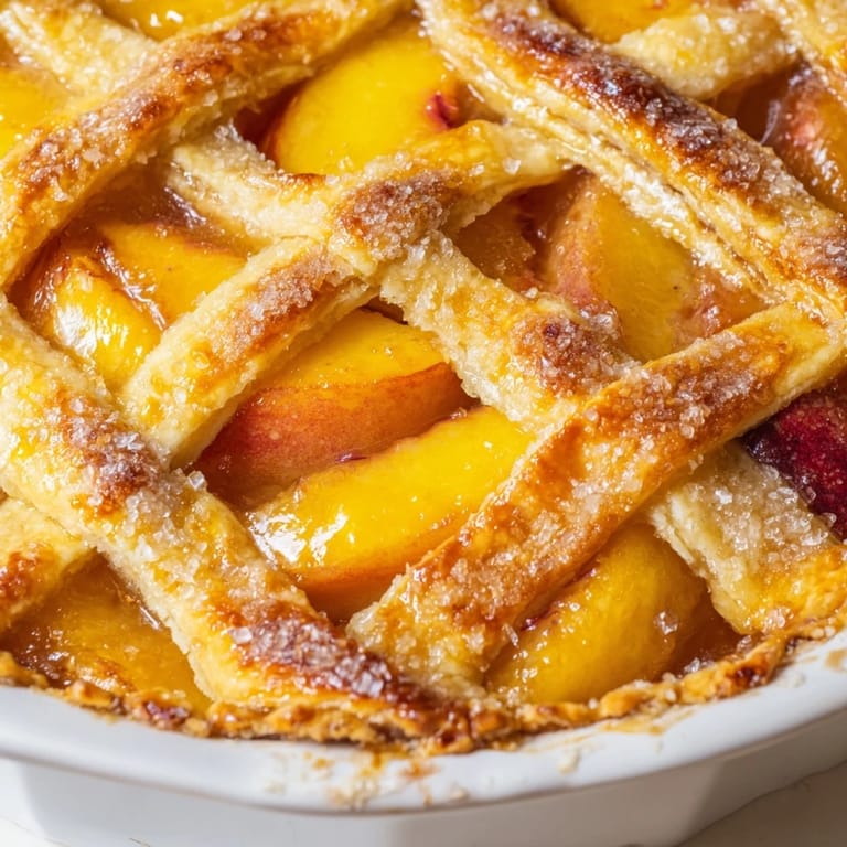 Save to Pinterest I was standing at the farmers market one August morning when the vendor handed me a peach still warm from the sun. One bite and juice ran down my wrist, the fruit so ripe it practically melted. I bought a whole basket without thinking twice. That afternoon, my kitchen smelled like summer itself as the oven worked its magic on what would become my first peach pie from scratch.